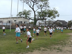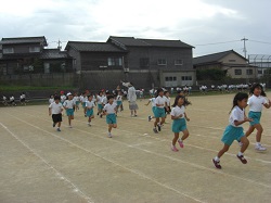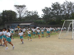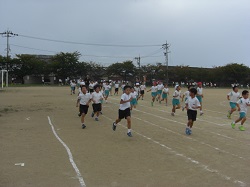 初日の今日、音楽に合わせて全校児童が走りました。低学年と高学年で走るコースを分け、ぶつからないようにしています。力をつけてマラソン大会に臨みましょう。