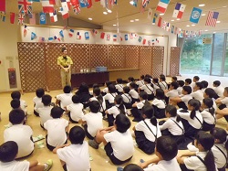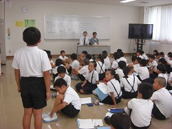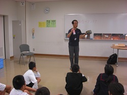 今週10~11日に実施される5年生の宿泊体験学習を前に、白山ろく少年自然の家による事前出前授業が本校で行われました。