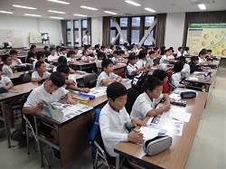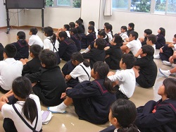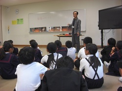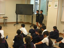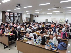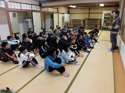 活動の内容や諸注意、出会えるかもしれない野生動物など、その楽しさを紹介していただき、5年児童は期待に胸を膨らませているようでした。思い出に残る体験活動となるよう期待しています。
