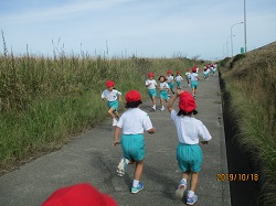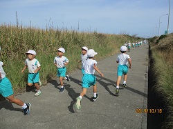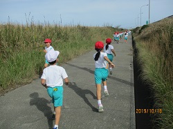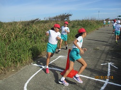 10月18日(金)に、高松海岸そばの里山海道サイクリングロードにおいて、校内マラソン大会が行われました。心配された天候は問題なく、絶好のマラソン日和となりました。どの学年の児童も、かけ足タイムでの練習の成果を発揮し、自分の力を出し切ってゴールまで走り抜きました。みんなよくがんばりました。