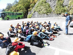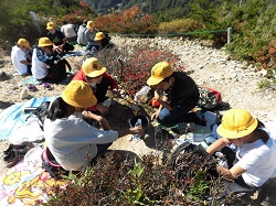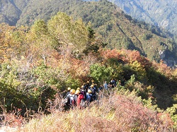 1日目は、学校を出発し、まずは登山にチャレンジしました。秋のホワイトロードを通り、三方岩岳をめざしました。好天にも恵まれ、素晴らしい秋山の自然にふれることができました。