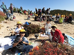 頂上でおいしいお弁当を食べた後、下山し、少年自然の家に入りました。(②へ続く)