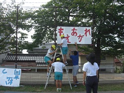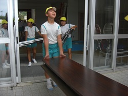 明日14日(土)はいよいよ運動会です。午後からは、5,6年生による会場準備が行われました。様々な看板やテント、ライン、用具など、効率よくおよそ1時間30分で行いました。どの子も張り切って準備を行いました。
