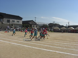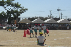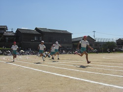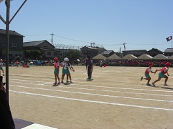 はじめに、全員参加の100m走がありました。どの組も高松小は上位で、全体的に総力は高いと感じました。