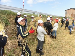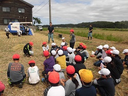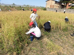 去る9月19日(木)5年生は、稲刈り体験をしてきました。お世話になっているのは、瀬戸町の喜多さんです。やり方を教えていただき、早速鎌で稲を刈ってみました。だんだん慣れてきてうまく刈れるようになっていきました。脱穀の仕組みについても詳しく教えていただきました。ありがとうございました。
