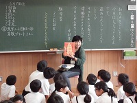 その場で教室に現れた先生が、読むということになっています。各教室で様々な本が読まれ、児童は真剣に聞き入り、物語の世界に引き込まれていました。