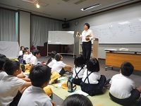 キュウリやミニトマト、なす等の夏野菜が大きく育ち、収穫できるまでになりました。毎朝収穫を喜ぶ2年生の歓声が聞こえます。これも「畑の先生」である駒井さんのご指導のおかげです。