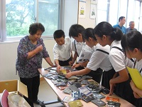 宇部先生のお話を聞き、6年児童は平和の大切さについて感想を述べていました。また、学習後、鶴彬さんの姪にあたる城戸さんのご厚意で、着物をリサイクルし、代表的な川柳をプリントした手作りのティッシュケースをいただきました。心温まる学習会となりました。宇部先生、鶴彬を顕彰する会の皆様、どうもありがとうございました。
