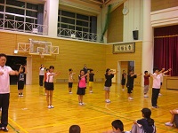 7月1日(月)夏休みのラジオ体操に向け、高学年リーダーの育成のため、市教委主催の高松中校区標記講習会が本校体育館で行われました。