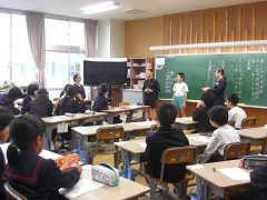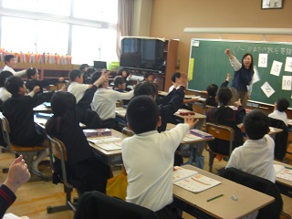 かほく市では、1年生から外国語の授業があります。1.2年生は年間10時間程度、3.4年生は週1時間、5.6年生は週2時間実施されています。本校では長谷川先生が英語指導助手として担任とともに授業を行います。本日は3年生のクラスで、数字を読んだり、じゃんけんを楽しんだりしていました。教室中明るく元気な声が響いていました。