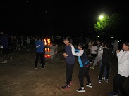 夜の活動は、「キャンプファイヤー」です。山の神から様々な火をもらい、厳粛なムードで始まり、レクリエーションで盛り上がりました。