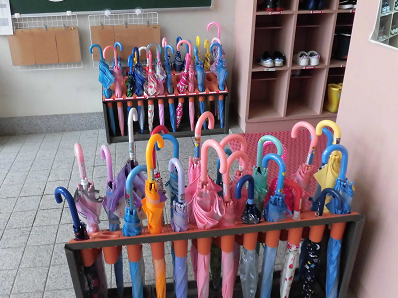 なんとか傘を上手にたたんで教室に向かっていきました。