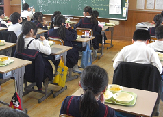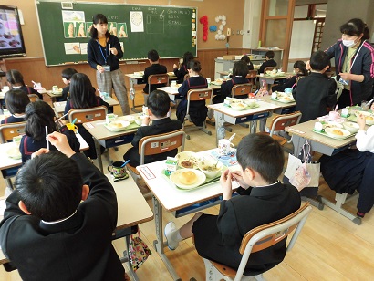 食缶を見て回ると、どのクラスもほとんど空になっていました。
