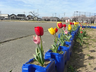 外では、2年生が昨年度に植えたチューリップが