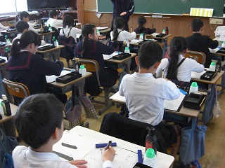 学校では、めざす子どもの姿に向かって授業はどうあるべきかを研究して、授業を公開し意見交換を行います。この日は、4年生算数「折れ線グラフと表」単元で実施しました。
