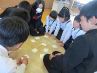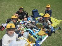 今回は第1回ということで、「1年生を迎える会」が開かれ、6年生が作ったプレゼントのメダルを渡して、みんなで1年生を歓迎しました。そして、仲良くお弁当を食べた後は、6年生が企画した、みんなの名前を覚えられるような楽しいゲームを行いました。どのグループも、笑顔で活動を楽しむ様子が見られました。