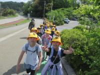 遠足当日まで,実行委員を募り,自分たちでしおりを作り,自分たちでルートを決め,自分たちで遊びも考えていました。歩きも常に軽やかで,どんどん進んでいき,全員が大きく遅れることなく,歩ききっていました。