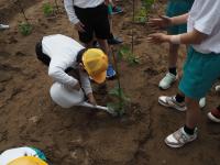今日は気谷さんをゲストティーチャーとしてお招きし、苗植えを行いました。