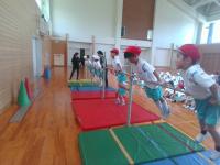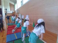 立ち幅跳び、反復横跳び、ソフトボール投げ、上体起こしを行いました。