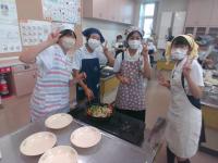 2025年5月22日 15時10分6年生は,家庭科で朝食の役割を学び,いためる調理で手軽にできる朝食のおかずを作る学習をしています。今日は6年1組が調理実習を行い,野菜いためを作りました。材料に合った野菜の切り方や,火の通りにくいものから炒めることなど,ポイントを確認しながら,グループで楽しく調理していました。どのグループも均一に火が通っていて,おいしい野菜いためを作ることができました。