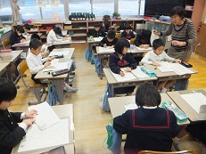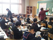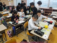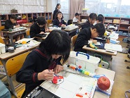 1月11日(木)に、4年生は、総合的な学習の時間の「福祉」の学習の一環として、地域の絵手紙サークル「虹」の皆さんから教えていただきながら絵手紙に挑戦しました。それぞれが一生懸命描いたハガキは、後日地域のお年寄りの方にお渡しする予定です。