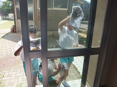 8月21日(月)一年生の学年登校日に、子どもたちは、たくさんの宿題を抱えて元気に登校してくれました。水泳記録会もあり、とても楽しそうに活動に参加していました。