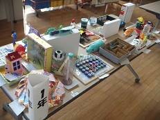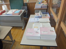 8月21日から各学年の登校日が続き、毎日大きなカバンや袋を抱えて登校してきています。時間をかけて作った大きな作品やかわいい作品などが、玄関ホールのテーブルに並び、だんだん賑やかになってきました。