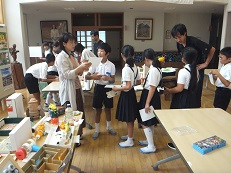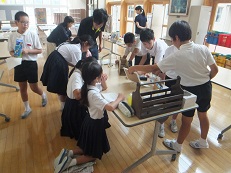 8月24日(木)6年生は、高松中学校で授業(理科・美術・英語)と部活動を体験しました。授業では、少し緊張気味でしたが、部活動体験では、熱心に教えてくれる先輩たちに囲まれ、とても楽しそうに活動に参加していました。