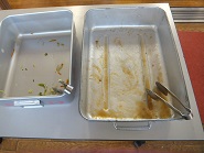 写真の食缶は2年生です。二学期も食材を生産されている方や調理員さんなど、多くの方々に感謝して残さないように食べて欲しいものです。