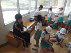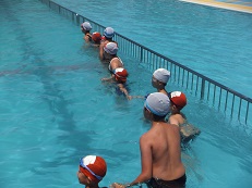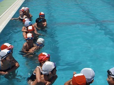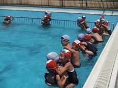 6年生が1年生と一緒にプールで活動しました。一年生も初めての深いプールに大喜びでした。おんぶにだっこと、6年生も優しく一生懸命お世話していました。