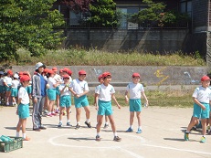 ソフトボール投げは、練習の成果で5メートル以上も記録が伸びて喜んでいる子どもたちも多くいました。