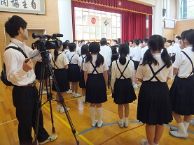 5年生の合唱練習の取材にかほくケーブルの方がおいでました。