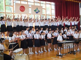 21日の本番に向けて、これから練習の追い込みをかけていく5年生の全体練習の様子を取材していただきました。