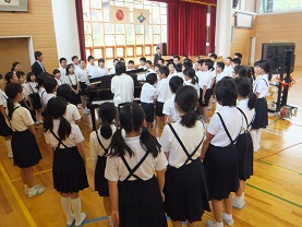 今日は、二年生と4年生の3組が歌声を披露してくれました。
