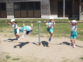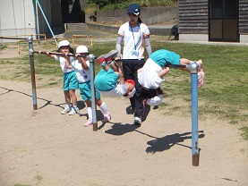 もうすでにすいすいと逆上がりができる子もいますが、一生懸命挑戦している姿には、順番を待っている子どもたちから「がんばれー」と大きな声援がかけられていました。