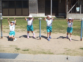 一年生も体育の授業で鉄棒に挑戦しています。