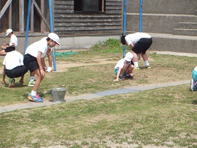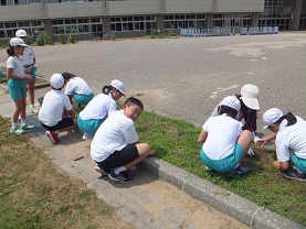 6月28日(水)に全校で運動場の草むしりをしました。