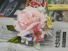 フラワーアレジメント教室の西田先生に教えていただき、とてもきれいなコサージュを完成させることができました。