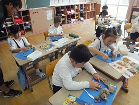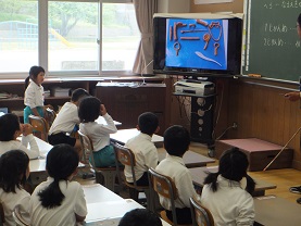 各学年では、図工の時間に粘土で作品を作っています。作った作品を大型テレビで映して、お友達の作品の良いところを発表しながら学習を深めているクラスもあります。