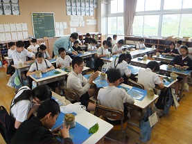 二年生は、地域の方に教えていただきながら教室前の畑で夏野菜を育てています。