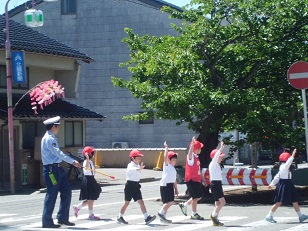 警察の方や交通推進隊の皆さんのご協力をいただき、交通ルールを守ることの大切さを学習することができました。