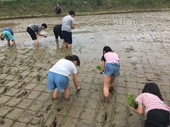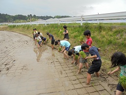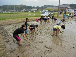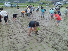 初めて田んぼに入る子どもたちが多く、柔らかい土の感触にも驚きの声を上げていました。