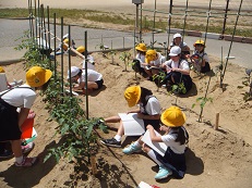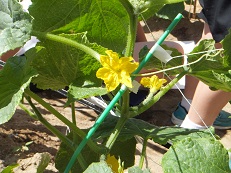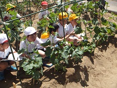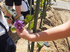 きゅうりも小さな実をつけ、なすも花が咲き、観察しながら植物のいろいろな発見に歓声を上げていました。