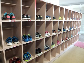 高松中校区の三校(高松中・高松小・大海小)では、下足箱のシューズを揃えて入れることを三校で共通実践しています。