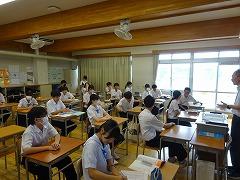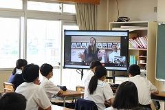 8月より高松中学校区(大海小、高松小でも授業をされます)に赴任されたALTのグレース先生です。昨日の実力テストを終えて、いよいよ中学生の授業が始まります。今日は、グレース先生が過ごされた中学校・高校の図書館や、音楽室の写真を見せていただいたり、グレース先生が中学校・学校で取り組んだスポーツや、演奏した楽器などをクイズで答えたりと、グレース先生のことを知る1時間でした。写真は3年1組のようすです。みんな笑顔で、クロムブックを使ったグレース先生からの質問にも答えていました。これからの授業が楽しみです。高松中学校の生徒をよろしくお願いします。