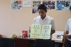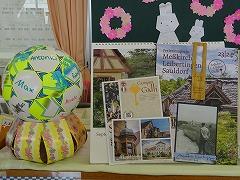 ・7月に本校を訪れたメスキルヒ市の生徒からいただいた書籍とサッカーボールに書かれた寄せ書きです。メスキルヒ市のきれいな風景の写真が見られます。(写真上段・右)