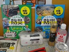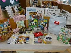 ・防災に関する展示(書籍・グッズ)、今年は関東大震災から100年にあたる年です。テレビで特集番組を見た人もいるのではないでしょうか。7月には、かほく市でも大雨の被害があったことは記憶に新しいと思います。(写真上段左・中)