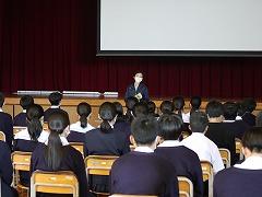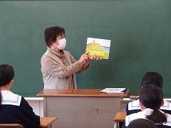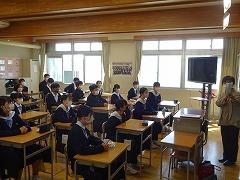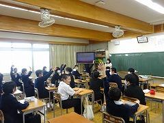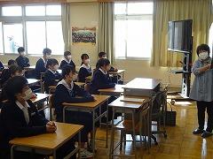 3年生が修学旅行に出発し、校舎内はいつもより寂しく感じました。5、6限に河北台中学校 細山栄養教諭 を講師にお迎えして食育講座が行われました。1年生は「バランスの良い食事の重要性・中学校の給食について」2年生は「」体力づくりに役立つ食生活」をテーマにお話しをいただきました。