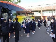 普段より1時間以上早い登校で、肌寒さが感じられる朝でしたが、これからの旅行への期待からか、集合した時から3年生は笑顔でした。予定通りに、学校を出発することができました。