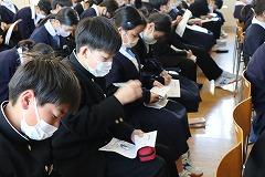 3年生は明日から2泊3日の日程で、関東方面へ修学旅行に出かけます。今朝は、事前に荷物搬送をするために、大きな荷物を持って登校しました。午後からは、集会にてルールの確認、しおりの読み合わせ、係別打合せの後、教室へ戻り明日の「鎌倉自主プラン」の最終確認をしました。旅行のようすについては、この欄でもお知らせしたいと思います。
